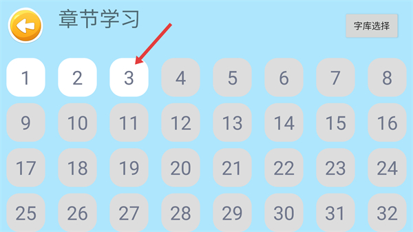 2、在章節(jié)學(xué)習(xí)頁面點擊【3】,進入第3章識字內(nèi)容頁面。
