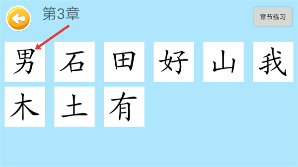 3、在第3章頁面點擊【男】字,進入該字的詳細學(xué)習(xí)頁面。