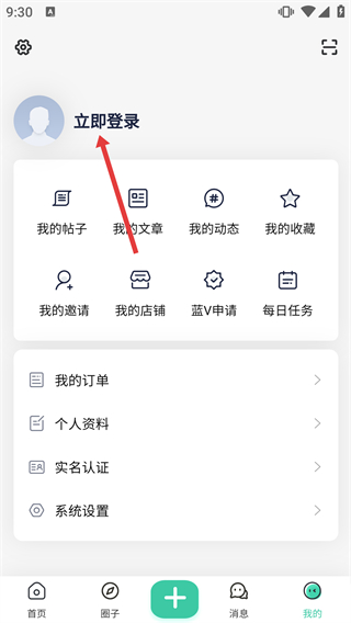 2、在“我的”頁面點擊【立即登錄】,進(jìn)入用戶登錄頁面。