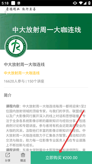 2、在課程詳情頁,點(diǎn)擊【立即購買】,進(jìn)入立即購買頁面。