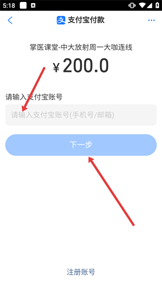 4、進(jìn)入支付寶付款頁面后,輸入支付寶賬號(手機(jī)號/郵箱),點(diǎn)擊【下一步】,按流程完成付款即可。