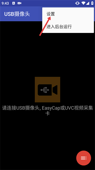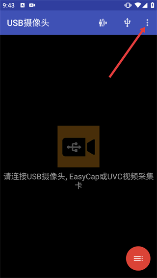 1、打開【USB攝像頭】APP,點(diǎn)擊右上角三點(diǎn)圖標(biāo),展開功能菜單,可進(jìn)行后續(xù)設(shè)置操作。