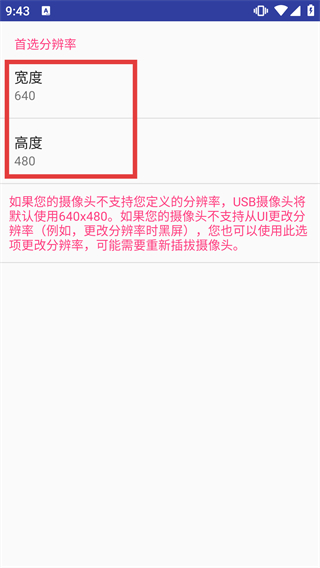 4、在分辨率設(shè)置界面,可設(shè)置【寬度】【高度】參數(shù),完成攝像頭分辨率配置。