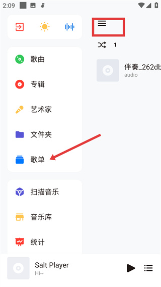 1、在音樂APP菜單中點擊【歌單】,進入歌單管理頁面。