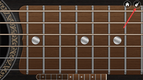 3、在吉他界面右上角,點(diǎn)擊吉他圖標(biāo)按鈕,可進(jìn)入樂(lè)器相關(guān)的設(shè)置或切換頁(yè)面,調(diào)整彈奏所用的樂(lè)器配置。