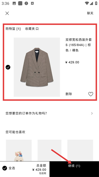 1、在ZARA首頁點擊底部購物籃圖標,進入購物籃頁面查看已添加的商品。