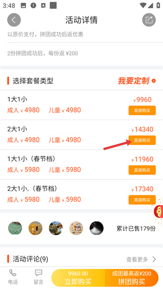 4、在活動(dòng)詳情頁(yè)選擇對(duì)應(yīng)套餐類型,點(diǎn)擊套餐右側(cè)【直接購(gòu)買】按鈕,進(jìn)入下單流程。