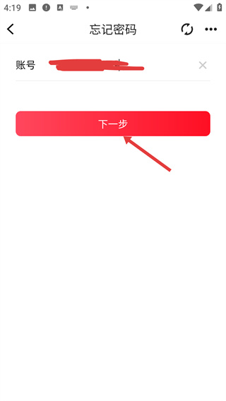 2、在密碼找回頁(yè)面輸入綁定的【賬號(hào)】信息,點(diǎn)擊【下一步】按鈕進(jìn)入身份驗(yàn)證環(huán)節(jié)。