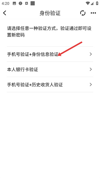 3、選擇【手機(jī)號(hào)驗(yàn)證+身份信息驗(yàn)證】方式,跳轉(zhuǎn)至手機(jī)號(hào)驗(yàn)證碼獲取與填寫頁(yè)面。