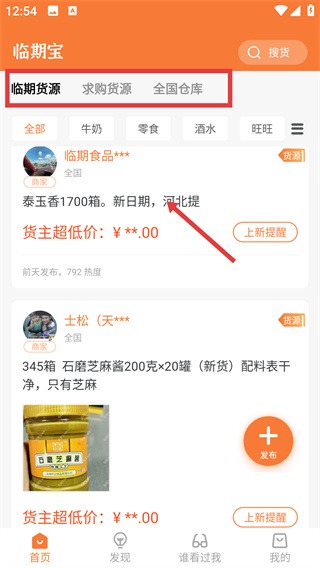 2、登錄后進(jìn)入首頁(yè),在“臨期貨源”標(biāo)簽下,選擇目標(biāo)貨源條目,進(jìn)入該貨源的信息詳情頁(yè)面。