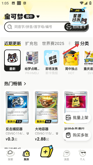1、在“集換”頁(yè)面頂部,點(diǎn)擊【器分類】按鈕,進(jìn)入卡牌庫(kù)的分類選擇界面,可按系列篩選卡牌。