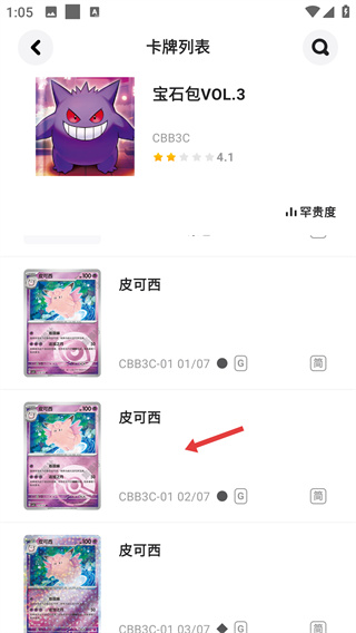 3、在寶石包VOL.3的卡牌列表中,選擇目標(biāo)卡牌,進(jìn)入該卡牌的信息詳情頁(yè)面。