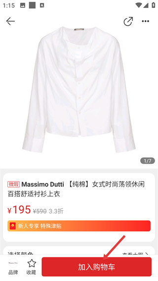 4、在商品詳情頁,查看商品信息與價格后,點擊頁面底部的【加入購物車】按鈕,后續(xù)在購物車中支付即可完成購買操作。
