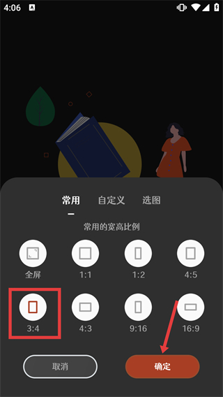 2、在寬高比例選擇彈窗中,選中“3:4”的比例選項(xiàng),點(diǎn)擊“確定”按鈕,進(jìn)入內(nèi)容編輯界面。