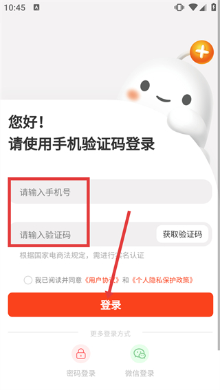 4、在登錄界面中,填寫手機(jī)號(hào)、獲取并輸入驗(yàn)證碼,勾選同意相關(guān)協(xié)議后,點(diǎn)擊“登錄”按鈕,完成商品加車的操作。