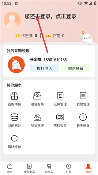 2、在個(gè)人中心頁面,點(diǎn)擊“您還未登錄,點(diǎn)擊登錄”區(qū)域,進(jìn)入登錄操作界面。