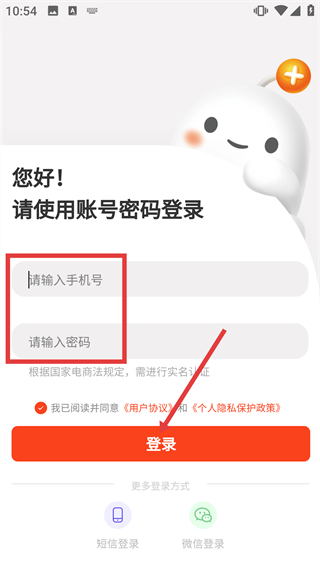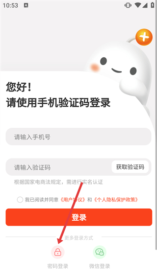4、在賬號(hào)密碼登錄頁面,填寫目標(biāo)手機(jī)號(hào)與對(duì)應(yīng)密碼,勾選同意相關(guān)協(xié)議后,點(diǎn)擊“登錄”按鈕,完成賬號(hào)登錄操作。