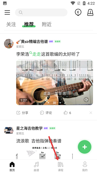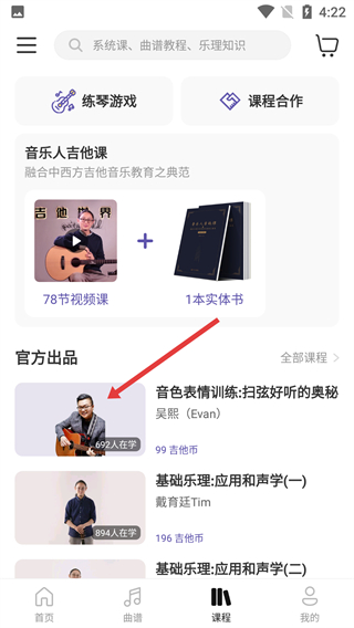 1、在應用首頁底部導航欄,點擊【課程】選項,進入課程功能頁面,可查看各類音樂教學課程。