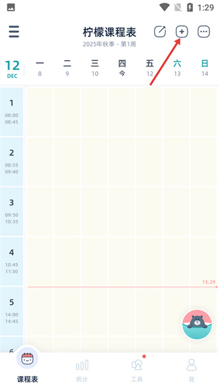 1、進(jìn)入檸檬課程表頁面,找到右上角的【+】按鈕并點(diǎn)擊,進(jìn)入課程信息的添加頁面。