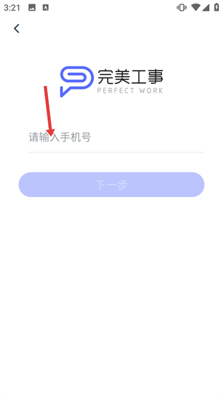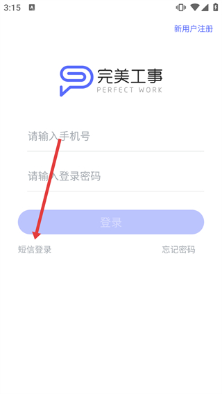 2、在【完美工事】登錄頁,點擊【短信登錄】選項,切換至短信驗證的登錄方式,準備輸入手機號。