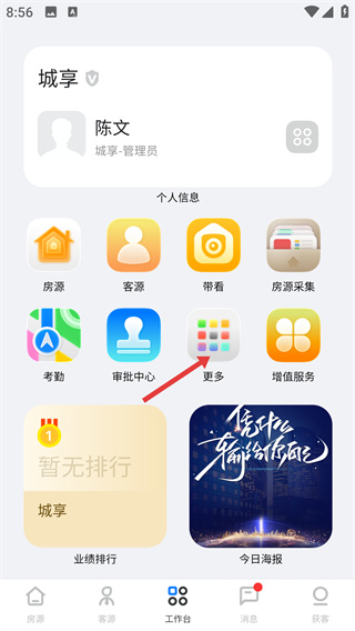 1、進入工作臺界面,找到【更多】功能入口,點擊可展開更多應用選項,便于使用更多業(yè)務工具。