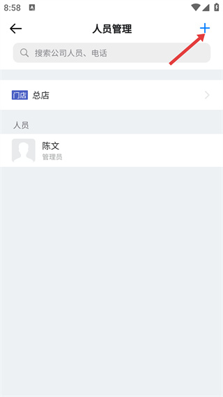 3、進入【人員管理】頁面,點擊右上角的【+】按鈕,可啟動新增人員的操作流程,用于添加公司人員信息。