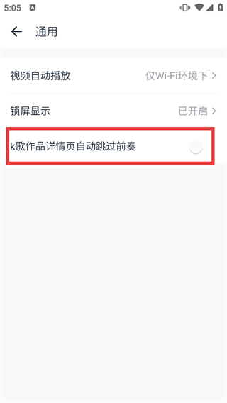 4、在通用設置界面,可開啟【跳過前奏】功能,以此優(yōu)化K歌過程中的操作體驗。