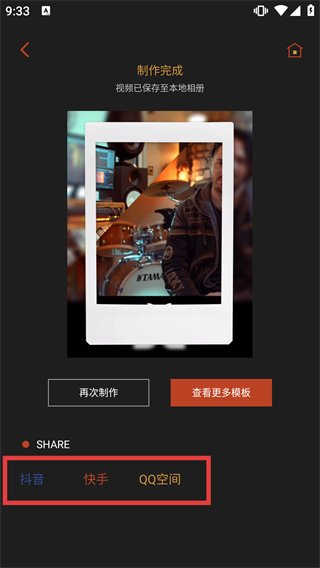 4、制作完成后內(nèi)容存至本地相冊(cè),還能選擇【抖音】-【快手】等平臺(tái),直接分享已制作好的內(nèi)容。