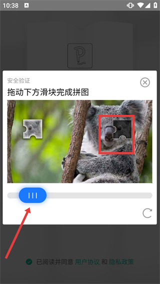 3、觸發(fā)安全驗(yàn)證后,拖動(dòng)下方滑塊完成考拉拼圖的匹配,通過(guò)安全驗(yàn)證以繼續(xù)獲取驗(yàn)證碼。