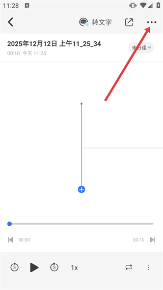 2、進入音頻詳情頁后,點擊右上角的【三點按鈕】,展開文件操作的功能菜單,查看可執(zhí)行的管理選項。