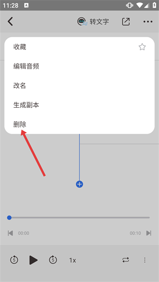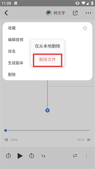 4、在彈出的子菜單中,選擇【刪除文件】選項,完成該音頻文件的移除操作。