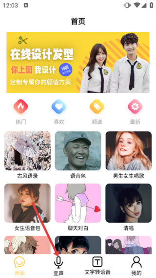 1、在應(yīng)用首頁,點(diǎn)擊底部導(dǎo)航欄的【變聲】選項(xiàng),進(jìn)入變聲器功能頁面,可進(jìn)行音頻變聲相關(guān)操作。