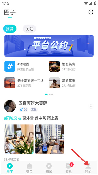 1、在圈子頁面底部導(dǎo)航欄中,找到并點擊【我的】選項,進(jìn)入對應(yīng)的個人中心操作頁面。