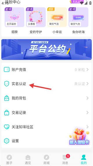 2、進(jìn)入個人中心頁面后,在功能列表里找到【實名認(rèn)證】選項并點擊,進(jìn)入該功能的操作界面。
