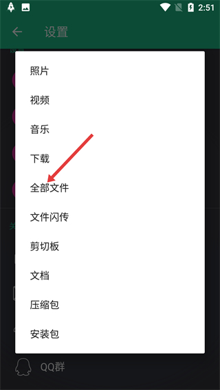 4、點擊【默認(rèn)顯示界面】后彈出選項列表,可在【照片】【視頻】【全部文件】等選項中,選擇應(yīng)用啟動后的默認(rèn)顯示內(nèi)容。