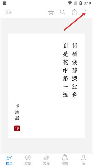 1、在【摘錄】頁面,點擊右上角的【三點圖標(biāo)】可打開更多操作選項。