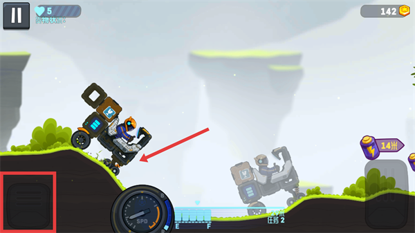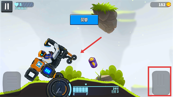 3、當(dāng)車輛有后翻趨勢(shì)時(shí),趕緊點(diǎn)擊右側(cè)加速鍵來(lái)平衡車身,還能順手收集【紫色電池】,一舉兩得呢。