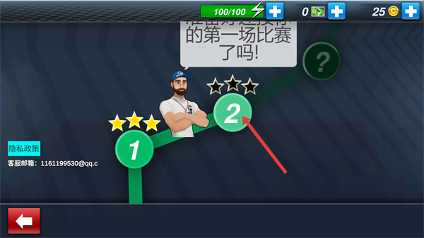 1、進入游戲后,可看到關(guān)卡路徑,點擊帶數(shù)字【2】的關(guān)卡節(jié)點,準備開啟對應(yīng)比賽。