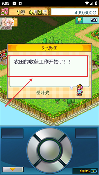 1、【岳葉光】通過對話框提示【農(nóng)田的收獲工作開始了!!】,需及時(shí)響應(yīng)開啟收獲流程。