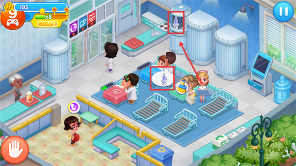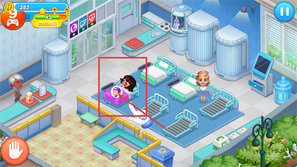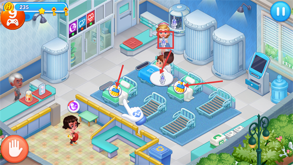 3、引導(dǎo)新患者到空置病床完成分配,借助床位規(guī)劃推進(jìn)當(dāng)前關(guān)卡進(jìn)度。