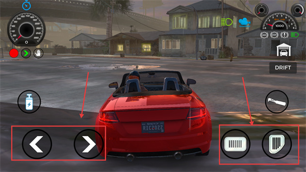 2、駕駛時用左右箭頭控制方向,通過油門/剎車鍵調(diào)節(jié)車速,配合手剎鍵可完成漂移操作提升駕駛體驗。