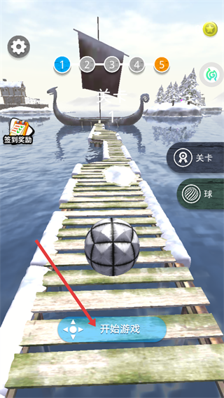 1、點擊【開始游戲】,操控【球】沿木板橋前進,避開橋面的積雪區(qū)域保持平衡。