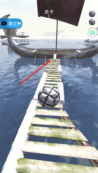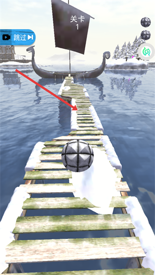2、關(guān)卡中控制【球】的滾動方向,跟隨木板橋的路徑移動,注意橋面的窄道區(qū)域避免掉落水中。