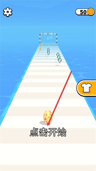 1、點(diǎn)擊界面中的【點(diǎn)擊開始】按鈕啟動(dòng)游戲,沿跑道前進(jìn),初始持有【金幣-50】,需收集跑道上的物品推進(jìn)進(jìn)程。