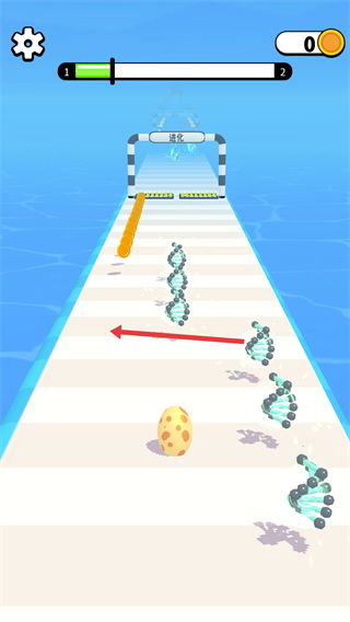 2、在跑道上靠近并收集【DNA】元素,向左移動(dòng)收集金幣并推進(jìn)進(jìn)度條,目標(biāo)是抵達(dá)界面顯示的【進(jìn)化】關(guān)卡節(jié)點(diǎn)。