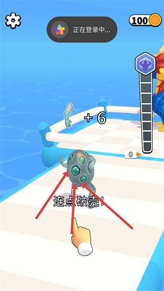 4、按照【連點(diǎn)破殼】的提示連續(xù)點(diǎn)擊,完成操作后可獲得【+6】獎(jiǎng)勵(lì),當(dāng)前界面顯示持有【金幣-100】。