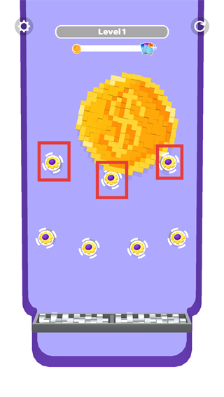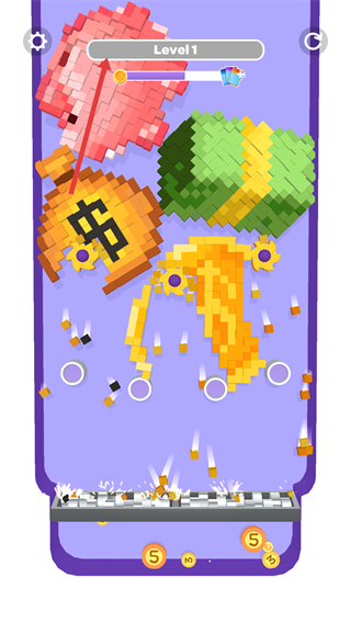 3、觀察像素物體的拆解過(guò)程,收集掉落的小道具,同時(shí)推進(jìn)【Level-1】的進(jìn)度條完成關(guān)卡。