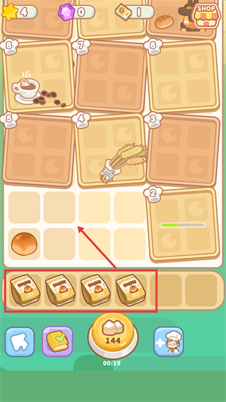 4、面包合并后,得到新道具面包,再繼續(xù)開啟下一輪。