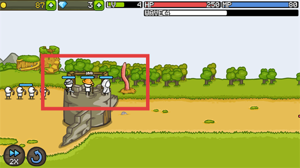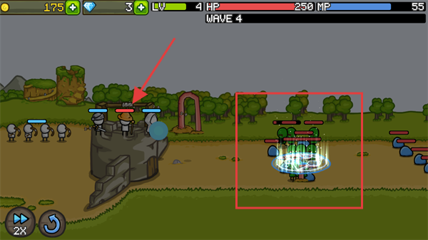 2、進(jìn)入關(guān)卡后,可選擇塔樓的英雄人物進(jìn)行技能釋放,并保持陣容完整以應(yīng)對(duì)敵方推進(jìn)。