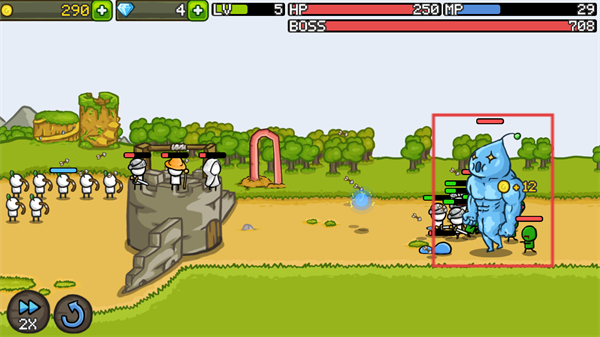 4、【BOSS】戰(zhàn)中,集中弓箭手火力攻擊巨型敵人,同時(shí)利用小兵輔助抗傷,逐步消耗其血量。
